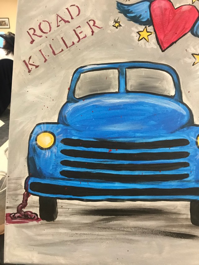 Road Killer On May 17, 2019 By MaryIn Art Tipsy Artist paint party February 2019 Share this: Click to share on Facebook (Opens in new window) Facebook Click to email a link to a friend (Opens in new window) Email Click to share on Reddit (Opens in new window) Reddit Click to share on Bluesky (Opens in new window) Bluesky Like Loading...