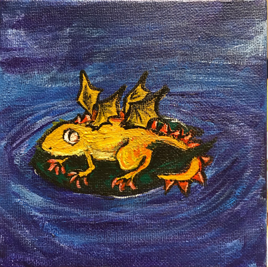 A thing On July 31, 2020 By MaryIn Art Attempted to paint a fragon (frog dragon). End result is some kind of weird flying water lizard. Share this: Click to share on Facebook (Opens in new window) Facebook Click to email a link to a friend (Opens in new window) Email Click to share on Reddit (Opens in new window) Reddit Click to share on Bluesky (Opens in new window) Bluesky Like Loading...