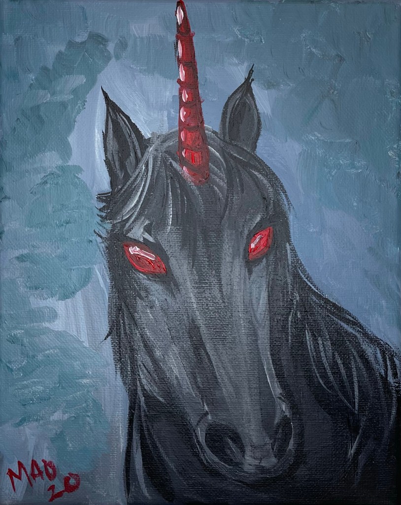 Dark unicorn On December 19, 2020 By MaryIn Art Share this: Click to share on Facebook (Opens in new window) Facebook Click to email a link to a friend (Opens in new window) Email Click to share on Reddit (Opens in new window) Reddit Click to share on Bluesky (Opens in new window) Bluesky Like Loading...