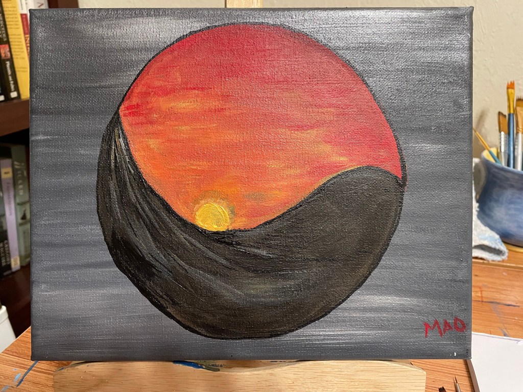 A little lopsided and not sure if it’s obvious enough that’s a mountain? Had the background sitting around since last year when I was doing yin/yang themed landscapes, so decided to finally slap something simple on it.