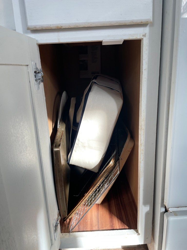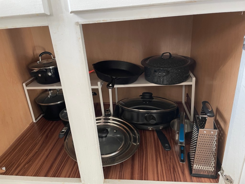 This is the before picture. The thing that always bugged me a bit was that choosing a frying pan is a bit hard because they’re stacked on top of each other. The baking sheets are also kind of cluster-fucky.