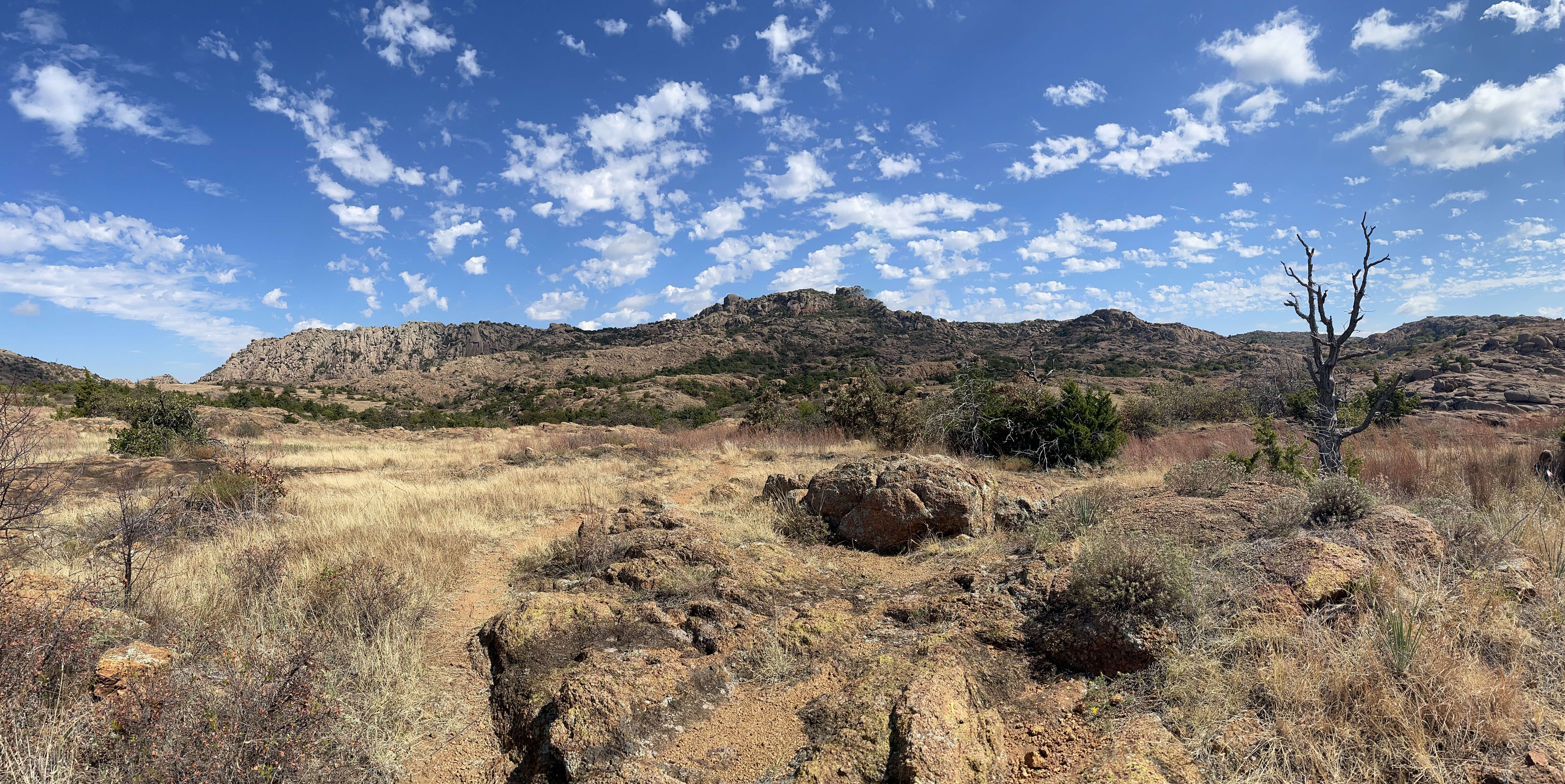 The Wichita Mountains in Oklahoma aren’t very impressive as far as mountains go – there are many ranges that have taller mountains, and you don’t have to travel far before they’re out of sight. But it is a very very old mountain range. So old that it is more accurately described as the skeletal granite remains of a mountain range. As such, they mostly look like clumps of crumbling rock formations dropped on top of each other. A lot of people like to visit the Wildlife Refuge to fish or hang out at some of the ponds or campsites, or to go hiking along some of the trails there. They’ve also got bison, longhorn cattle, deer and elk, and a prairie dog city.