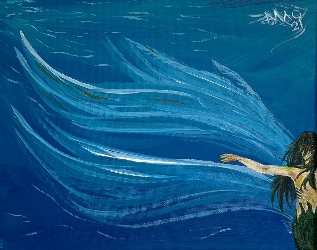 Slapped some backgrounds on the last of my small canvases the other night, and tonight painted subjects on them. I really like how the face in the stars came out. Wonder if I could have made the sea angel more disturbing too. Hmm