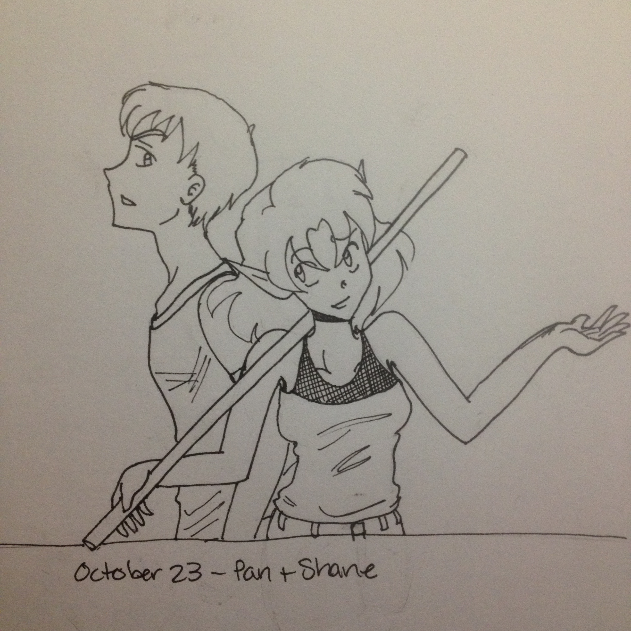 So at the beginning of the story she is somewhat of a vagabond who finally finds a place where she decides to stay – despite the fact her assassin will catch up. The backstory is kind of tragic, but she is very upbeat despite that, and a bit of a “trickster” spirit. I used to draw her all the time, so none of these images are recent.