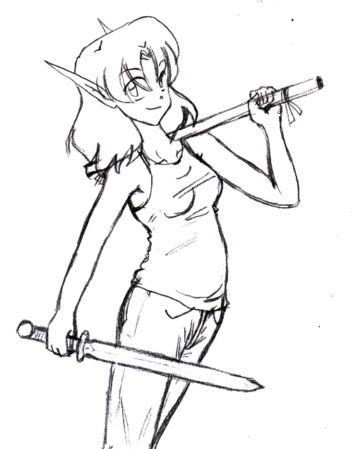 In this particular world, elves belong to an isolationist society that looks down on other cultures. They’re so strict in their control of their society that intermingling with the other races is illegal, and half-elves are targeted by the assassin caste. Panya’s mother was a young human actress who was very outspoken about the restrictions of the Elven government, which is how she met Panya’s father. After Panya is born, an assassin is assigned to her family – her mother was killed when she was still a toddler, and her father died when she was a kid/preteen. He managed to kill the assassin assigned to them when he died, so the assassin’s daughter (roughly of an age with Panya) is forced to take up his unfinished assignment.